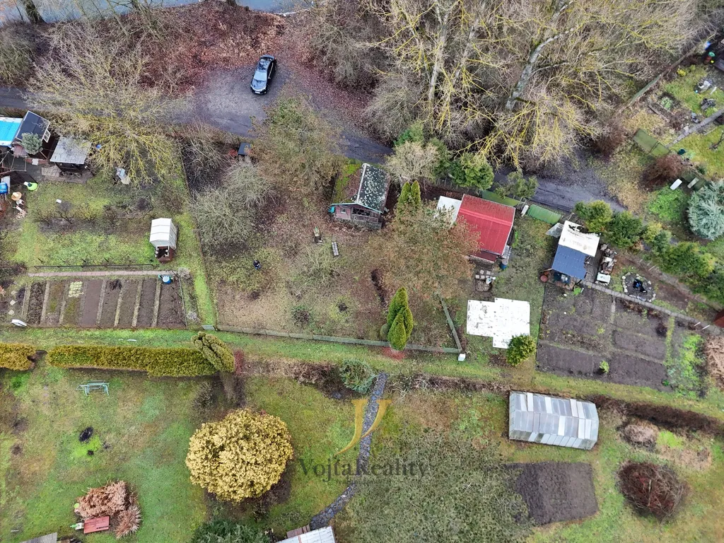 Pozemek má rozlohu 377 m² a jeho součástí je menší chatka s evidenčním číslem. Na zahradě je k dispozici přípojka elektrické energie, kopaná studna s užitkovou vodou a suché WC. Objekt je dřevěný s kamenným základem a je určen ke kompletní rekonstrukci, což nabízí ideální příležitost přizpůsobit si vše podle vlastních představ.