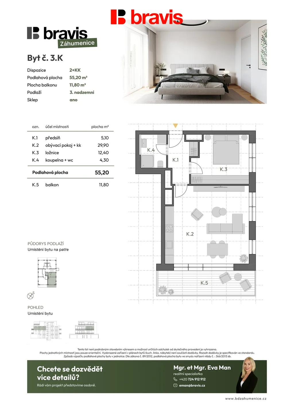 Celková užitná plocha bytu činí 55,2 m², což v kombinaci s prostorným balkonem vytváří ideální prostor pro jednotlivce, páry nebo jako výbornou investici do pronájmu.