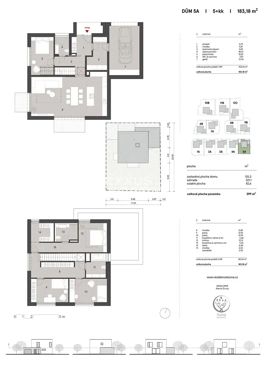 Nabízíme moderní dvoupodlažní rodinný dům situovaný v nově vznikajícím rezidenčním projektu v atraktivní lokalitě Praha 4 – Točná. Soubor tvoří pouhých dvanáct rodinných domů zasazených do klidného prostředí obklopeného zelení. Rezidence Točná spojuje soukromí, kvalitní architektonické řešení a blízkost přírody do harmonického celku, který vytváří ideální podmínky pro komfortní rodinné bydlení.