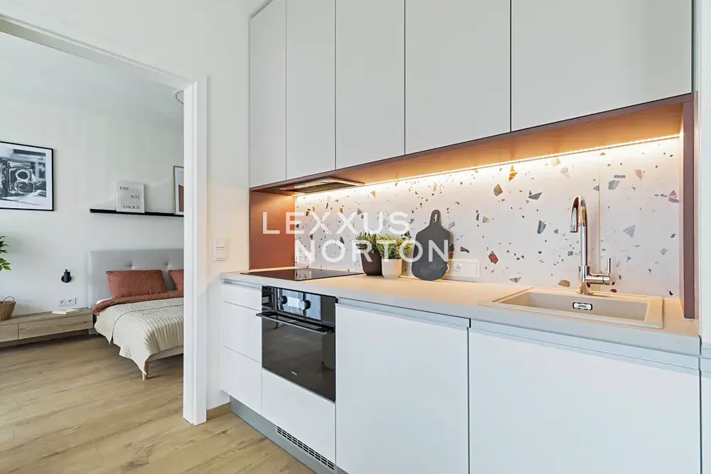 Interiéry bytů ve Vaníčkově Dvoře vynikají nadčasovou elegancí a důrazem na kvalitu. Laminátové podlahy v obytných místnostech doplňuje keramická dlažba v koupelnách a chodbách, okna s izolačním trojsklem zajišťují ticho i tepelný komfort. Koupelny jsou řešeny v moderním stylu s vanou nebo prostorným sprchovým koutem. Architekti věnovali pozornost i společným prostorám – decentní materiály, zelený vnitroblok a promyšlené detaily vytvářejí harmonické prostředí, které přirozeně navazuje na okolní zástavbu.