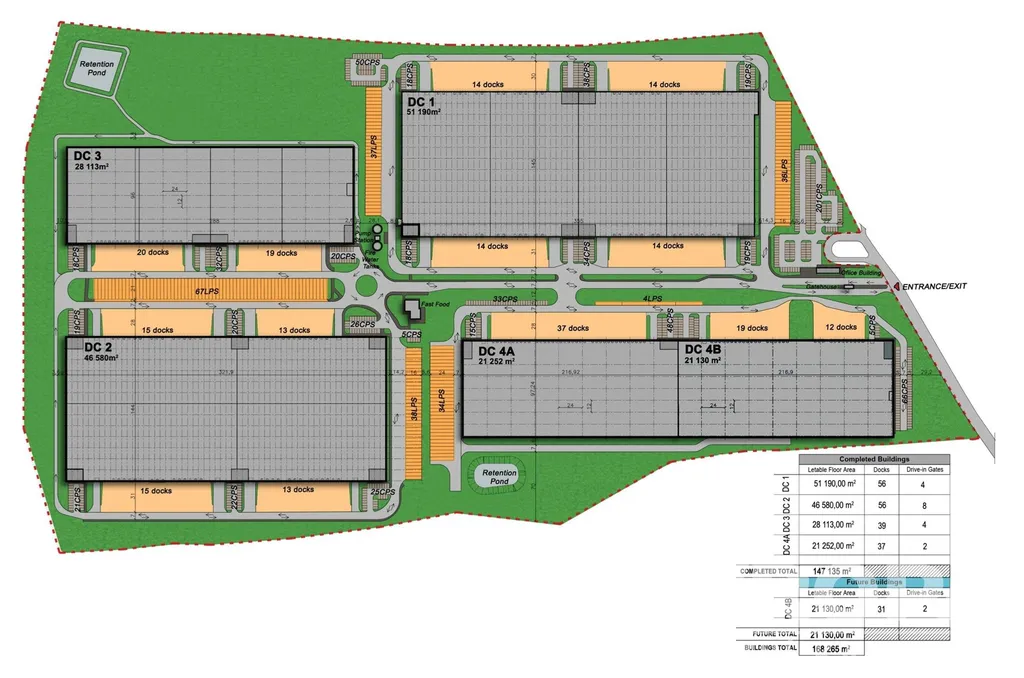 • Výborná dopravní dostupnost – přímé napojení na dálnici D8 (exit 9), strategická poloha u hlavní evropské trasy Praha – Německo (Hamburk) a blízkost letiště Prague Vodochody. Areál je také dobře dostupný MHD, což usnadňuje dojíždění budoucím zaměstnancům.