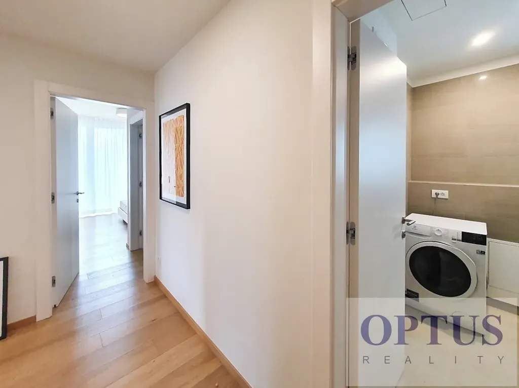 Nabízíme k pronájmu luxusní, kompletně zařízený byt 2 + kuchyňský kout (70,93 m2) + zahrada s terasou (109,15 m2), situovaný ve 2. patře novostavby bytového domu s privátním wellness, bazénem, recepcí, ostrahou, rozlehlou terasovitou zahradou a s podzemním parkováním.