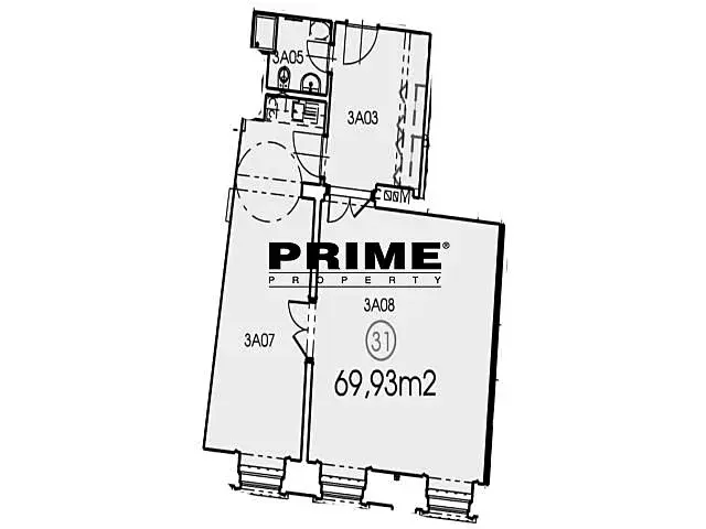 Dispozice prostor: vstupní hala 11m2, dvě samostatné místnosti (jedna větší 33m2 a jedna menší 20m2, obě mají vstupy z haly a zároveň mají mezi sebou spojovací dveře; menší kancelář má kuchyňku) a koupelna (se sprchovým koutem, umyvadlem a toaletou).