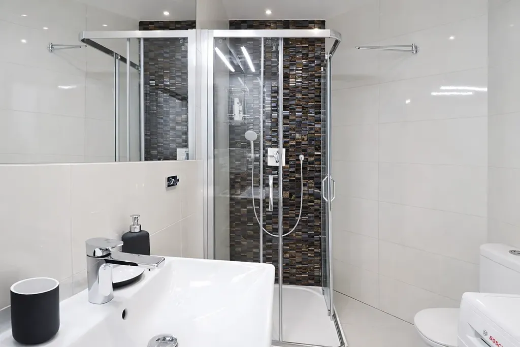 Byt o dispozici 2+kk je dokončen ve vysokém standardu - dřevěné podlahy, plně vybavená kuchyňská linka se všemi spotřebiči, manželská postel či pohovka v obývacím pokoji. Dále je zde koupelna se sprchovým koutem a pračkou se sušičkou. Byt je plně vybavený a k okamžitému nastěhování. Na chodbě a v ložnici jsou úložné skříně, které nabízí dostatek úložného prostoru.