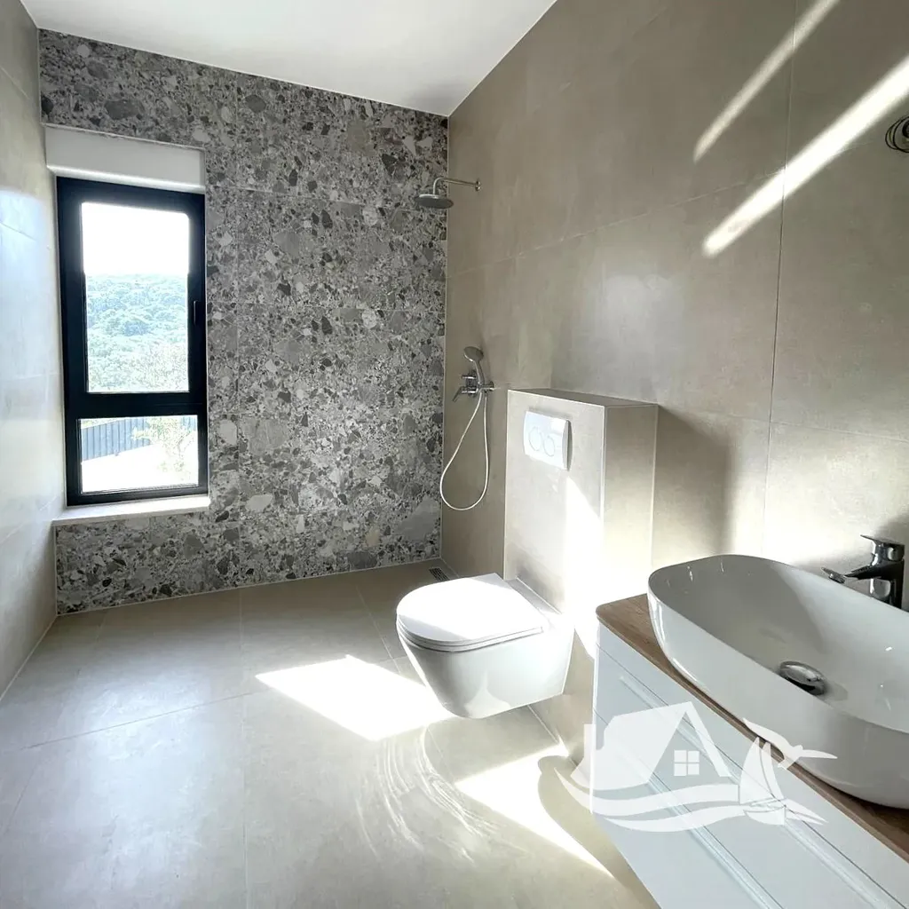 Na vyvýšeném místě pouhých 150 metrů od pláže nabízíme samostatně stojící luxusní vilu s bazénem a garáží, která poskytuje dechberoucí výhled na moře a okolní krajinu. Tato moderní novostavba je ideální pro celoroční bydlení i jako reprezentativní rekreační sídlo s výrazným investičním potenciálem.