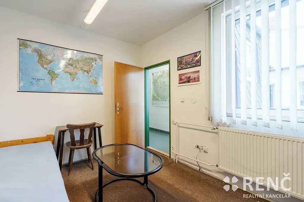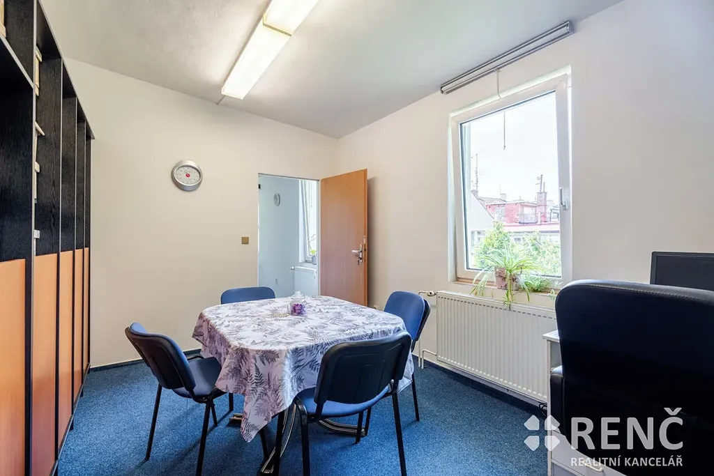 V přízemí nemovitosti se nachází obchodní prostor s výlohou orientovanou do ulice, vstupní chodba, schodiště, sociální zařízení a dva sklady. Součástí druhého nadzemního podlaží jsou čtyři kanceláře a sociální zázemí. Ve třetím nadzemním podlaží (podkroví) jsou dvě kanceláře.