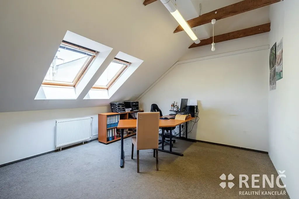 III.NP (2.patro): Vnitřním schodištěm je přístupné také 2. patro nemovitosti, kde se nachází kancelář o ploše 23,2 m2 a druhá kancelář o ploše 14,6 m2, součástí je rovněž chodba 8,65 m2. Celková plocha 2. patra (III. podlaží) domu je 46,45 m2.