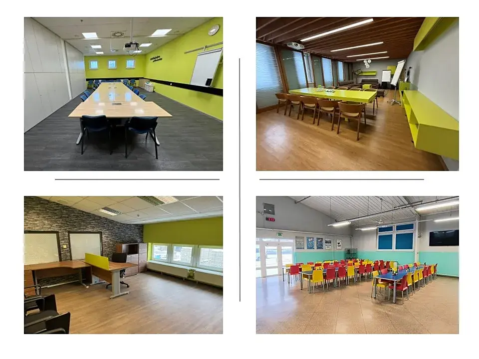 Jídelna, kanceláře a další prostory poskytují zázemí pro kapacitu až 1 200 zaměstnanců.
