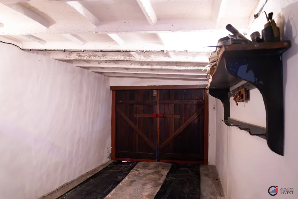 Součástí domu je sklep, garáž, dílna, úložné prostory v podkroví a venkovní terasa s krbem.