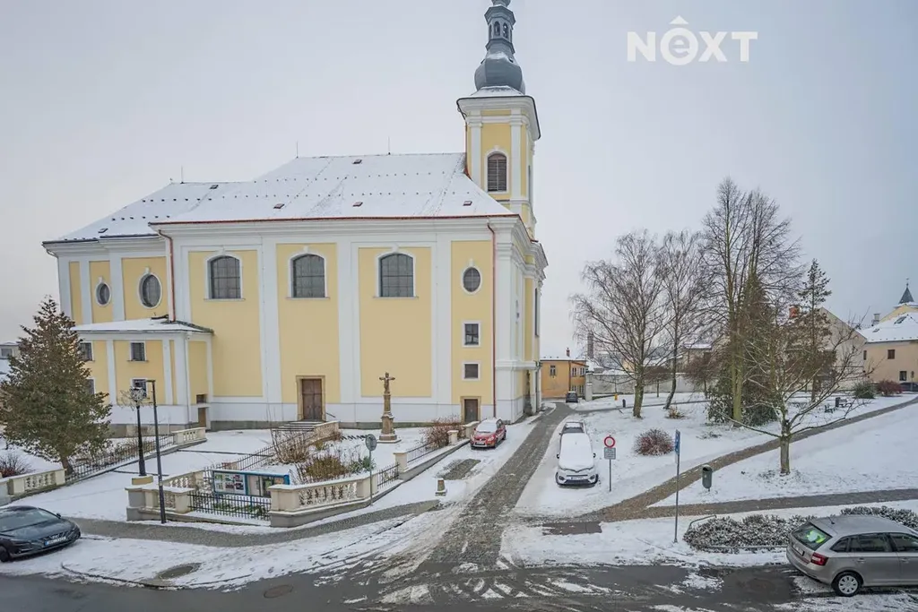 Dům stojí přímo na náměstí, tedy na frekventovaném místě, a v bezprostřední blízkosti máte veškeré služby, obchody, školu, školku, poštu, knihovnu i zastávku veřejné dopravy.