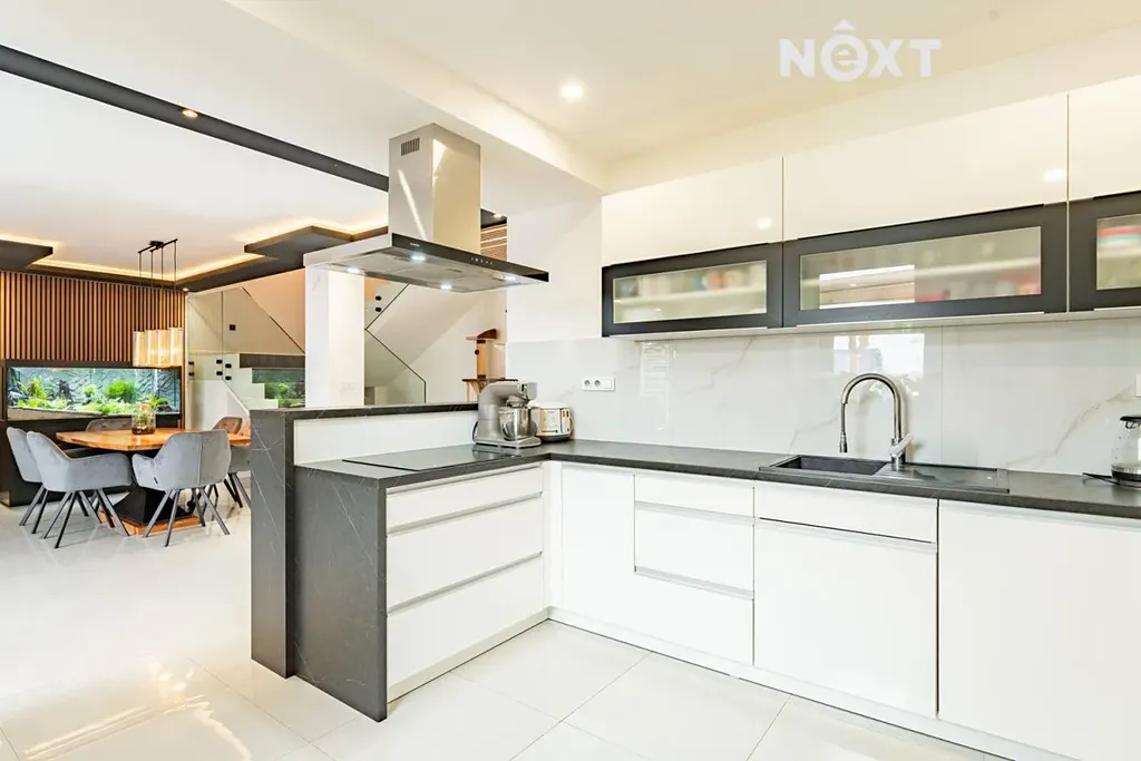 Nabízíme vám moderní dvoupodlažní řadový dům o dispozici 4+kk s podlahovou plochou 170 m² + garáž 20 m² , nacházející se v klidné části obce Hostkovice. Dům byl kolaudován v roce 2021, stojí na pozemku o výměře 426 m². Díky umístění ve slepé ulici s minimálním provozem poskytuje maximální klid a bezpečí pro rodinné bydlení.