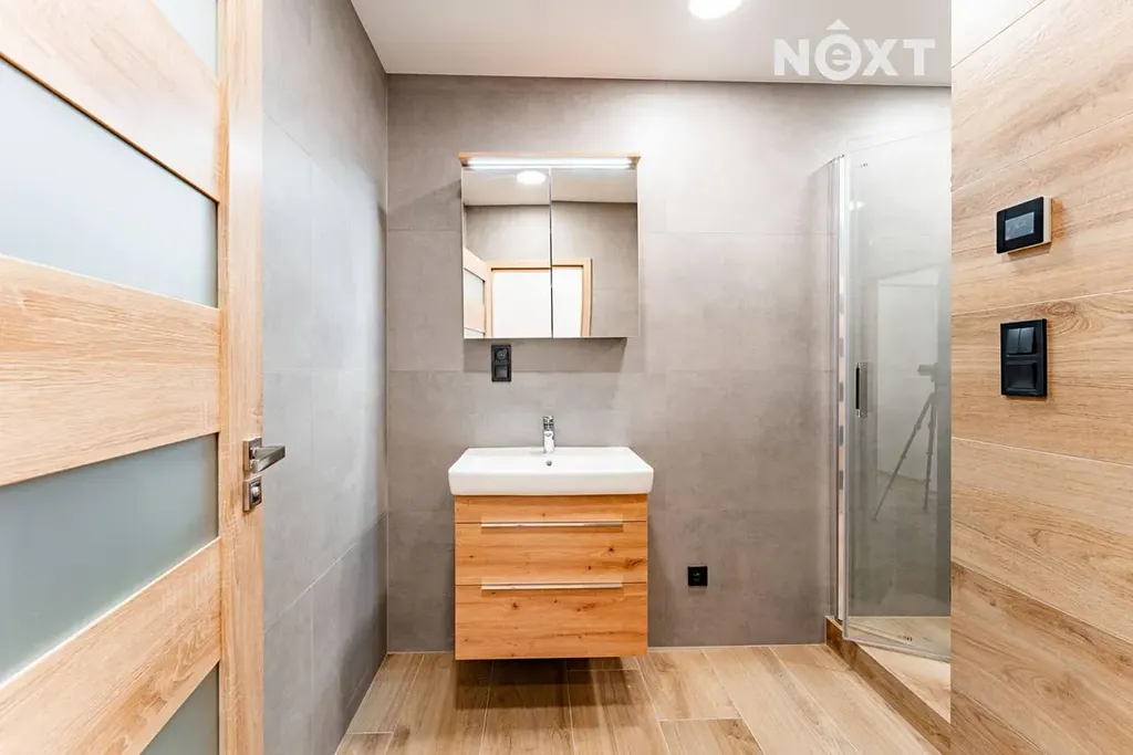 Dispozice bytu je praktická a vzdušná – z chodby se vchází do koupelny se sprchovým koutem, samostatné toalety a jednoho z pokojů. Dále je zde obývací pokoj s lodžií, kuchyně s vestavěnými spotřebiči a další pokoj. Všechny místnosti jsou orientovány na východ, takže je byt po celý den příjemně prosvětlený.