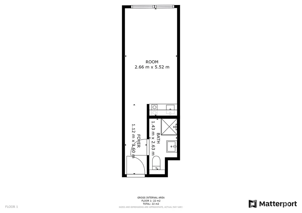Jednotka je prakticky řešené 1+kk – vstupní chodba, koupelna se sprchovým koutem a WC a světlá obytná místnost s kuchyňským koutem, prostorem pro spaní i posezení. Díky neutrálním barvám a modernímu provedení působí vzdušně a je připravená k okamžitému užívání.