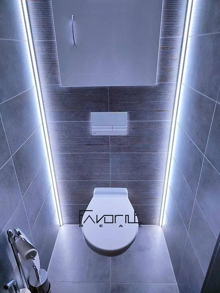 WC je zvlášť. TV stěna s nasvícením a přípravou pro TV a internet.