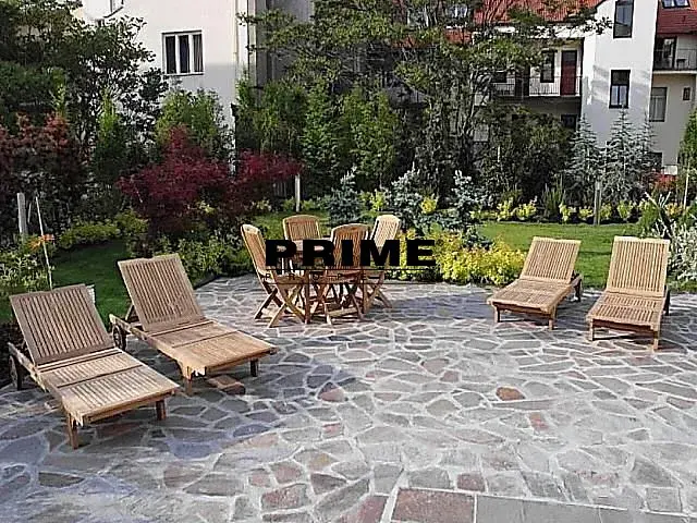 Byt je zařízen kvalitním italským nábytkem. Dispozice bytu: vstupní předsíň, obývací pokoj s jídelní částí a plně vybaveným kuchyňským koutem se spotřebiči (plynová varná deska, trouba, lednice s mrazákem a myčka), ložnice se vstupem na balkon (směřujícím do ulice), druhá ložnice, koupelna (s vanou, umyvadlem, toaletou a bidetem) a samostatné WC.