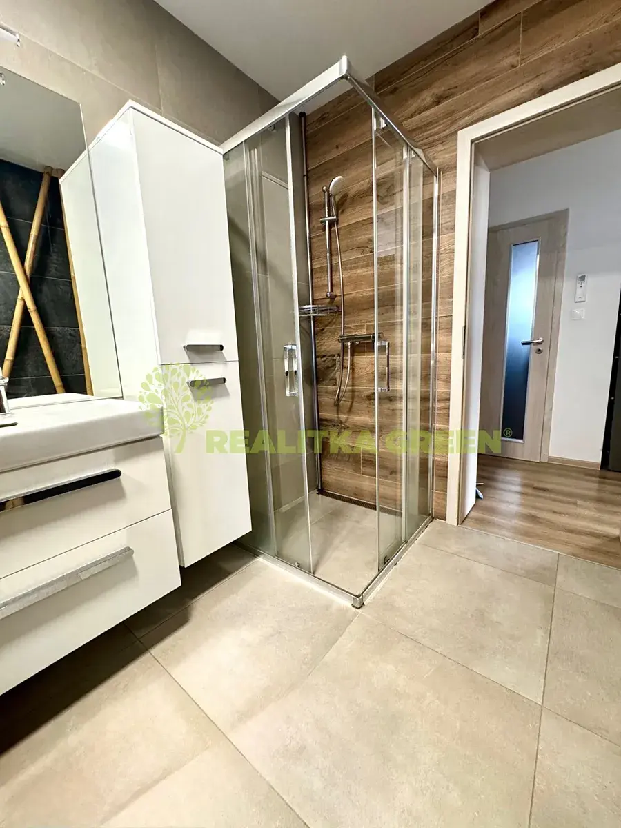 Dispozičně: 1. NP vstupní chodba, technická místnost, ložnice, koupelna s vanou a sprchovým koutem, společná s wc, dětský pokoj, kuchyň s jídelním koutem je propojená s obývacím pokojem a s portálovým vstupem na balkon. Kuchyňská linka je vybavena vestavěnými spotřebiči - myčka, indukční varná deska, horkovzdušná trouba, mikrovlnná trouba, digestoř. V ložnici je umístěna vestavěná skříň.V 1. PP (suterénu) je 3x technická místnost se dvěma samostatnými venkovními dveřmi. Jedna z místností je po rekonstrukci 2024 (vnitřní zateplení stěn i podlahy, nové wc, bojler), kterou lze využít jako společenskou místnost.