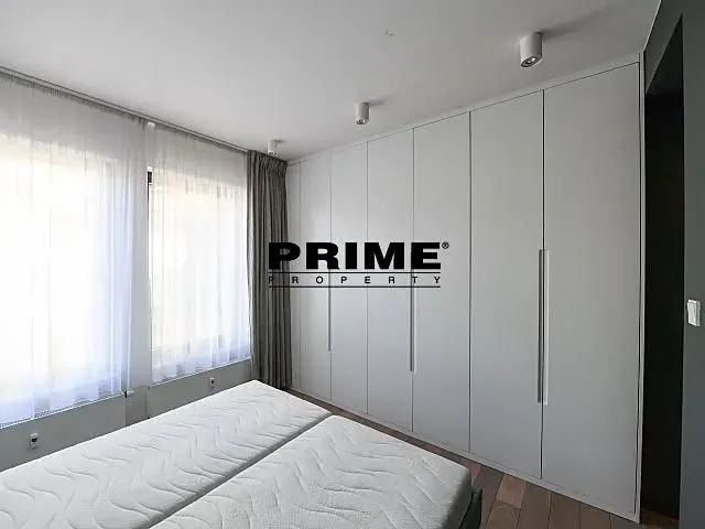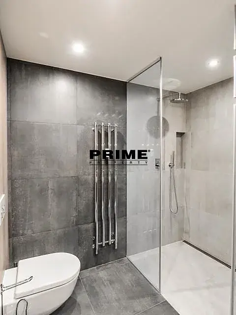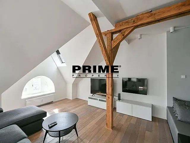 Nájemce neplatí provizi. Kompletně zrekonstruovaný, exkluzivní, 2 ložnicový, klimatizovaný, zařízený podkrovní byt se 2 koupelnami k pronájmu, 3+kk, 156m2, s garážovým parkovacím stáním, situovaný v 5. patře kompletně zrekonstruovaného secesního domu s výtahem.