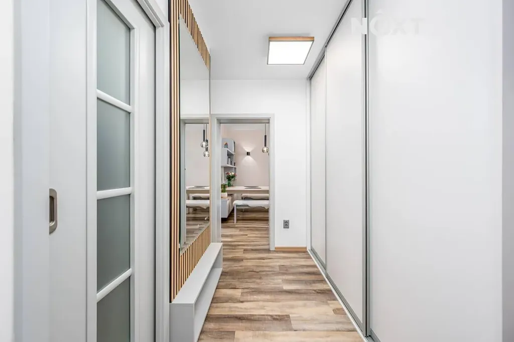 Nový kompletně vyzděný sklep pro maximální bezpečnost kol a lyží. Vybavení dále zahrnuje nové bezpečnostní dveře a kvalitní vinylové podlahy, které přispívají k estetice a snadné údržbě interiéru, v bytě zůstane pračka a sušička.