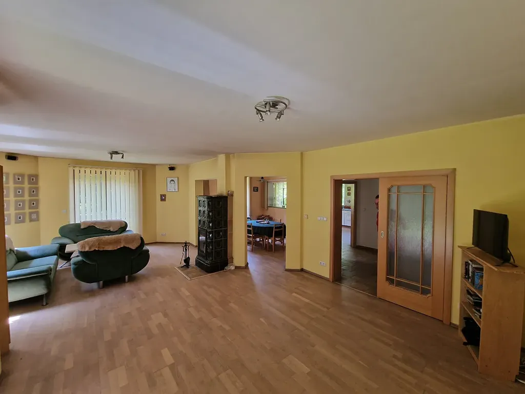 Prostorný rodinný dům je vystavěn na opravdu krásném mírně svažitém pozemku v těsné blízkosti lesa, kdy na první pohled není z obecní příjezdové komunikace absolutně vidět, jak rozlehlý dům s pozemkem se při cestě nachází.