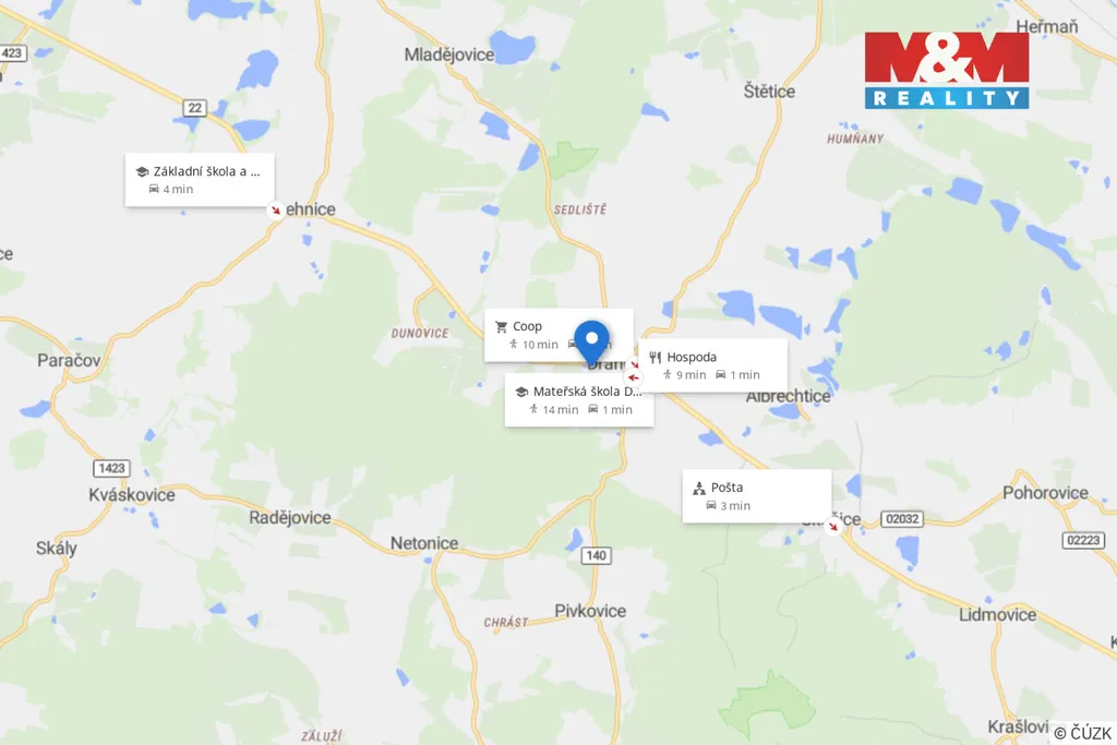 Dům stojí na pozemku o výměře 752 m² na kraji obce, což zajišťuje klid a přitom výbornou dostupnost. Má novou střechu a je vhodný k okamžitému užívání i postupné modernizaci podle vašich představ.