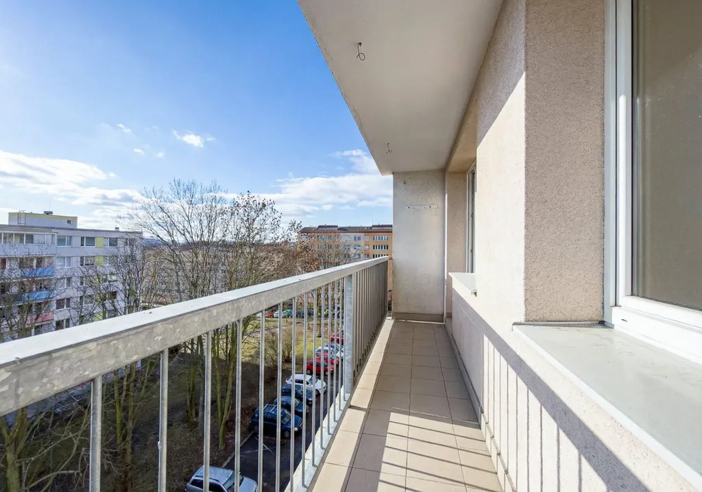 Byt je dispozičně veden jako 4+1, v minulosti byla odstraněna příčka mezi kuchyní a jedním pokojem, takže dnes prostor fakticky odpovídá dispozici 4+kk (otevřený obývací prostor s kuchyní). Dispozice dále nabízí předsíň, tři samostatné pokoje a koupelnu. Velkým benefitem je prostorná lodžie přes dva pokoje. Praktická je také komora na chodbě před bytem, vhodná pro uložení věcí.