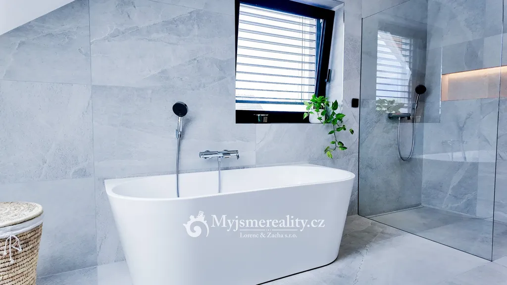 Dům je navržen s důrazem na nadčasovou architekturu, energetickou efektivitu a kvalitní materiály. Vytápění zajišťuje moderní tepelné čerpadlo země–voda v kombinaci s podlahovým vytápěním, které poskytuje příjemné teplo v celém domě. V letních měsících oceníte komfortní chlazení klimatizačními jednotkami ve všech obytných místnostech. Energetická náročnost budovy odpovídá úsporné třídě B.