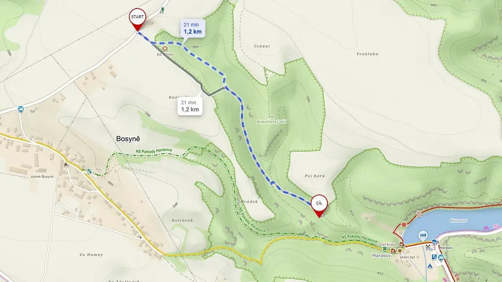 Nabízíme k prodeji krásný vzrostlý les o celkové výměře 12 485 m2 skládající se ze 4 samostatných parcel (největší je Bosyně p.č. 265/13 - 11 051 m2). Les se nachází kousek od přírodního koupaliště Harasov v Kokořínském dole. V blízkosti lesa vede naučná stezka. Skladba vzrostlého lesa dle LHO: DBZ 25%, BO 55% a BR 10%. Napozemek vede přímo cesta z obou stran.