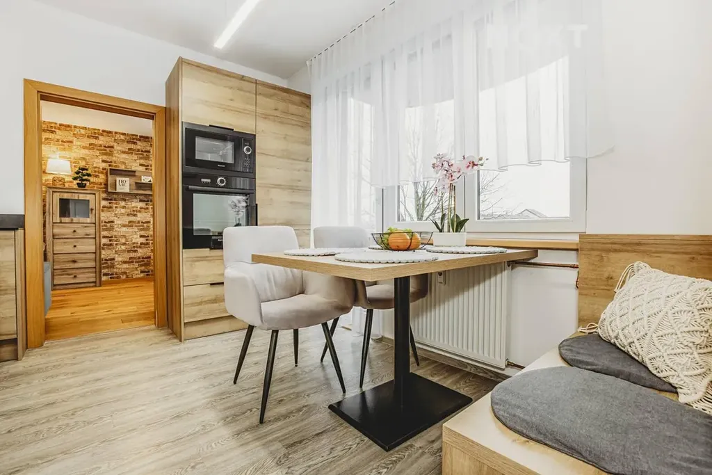 Kuchyně o velikosti 12,0 m² je zrekonstruovaná, moderní a funkční. Nabízí dostatek pracovní plochy i úložného prostoru a je řešena tak, aby bez problémů zvládla každodenní provoz.