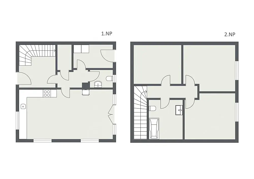 Dispozice moderně řešeného mezonetového bytu 4 + kk s předzahrádkou (150 m2) vymezeného v rodinném domě nabízí novému majiteli v 1. NP prostornou vstupní chodbu, světlý obývací pokoj s možností instalace krbových kamen a s pohodlným vstupem na předzahrádku, kompletně vybavenou kuchyň se spotřebiči TEKA, šatnu, technickou místnost se vstupem na zahradu a samostatnou toaletu s umyvadlem. Ve 2.NP jsou pak k dispozici 3 pokoje, koupelna s vanou a toaletou.