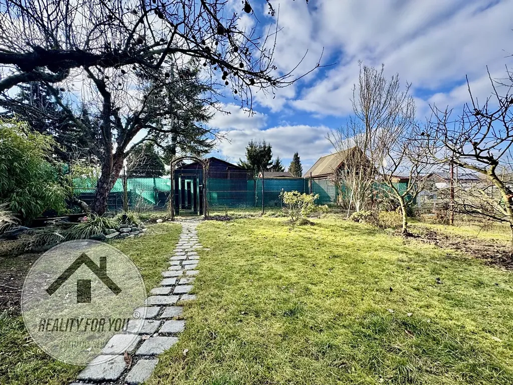 Zahrádka o výměře ca. 360 m2 je rovinatá a kompletně oplocena. Uprostřed pozemku je umístěna chatka, která původně vznikla z vagónu. Stavba chatky je ve velmi dobrém technickém stavu a nabízí obývací pokoj s možností přespání, menší kuchyňku a sklípek. V centrální části zahrady je velká terasa s černou venkovní kuchyní - ideální pro grilovačky, posezení s přáteli a rodinou či k relaxaci. V zadní části stavby je technika část (sklad) o výměře cca 10 m2.