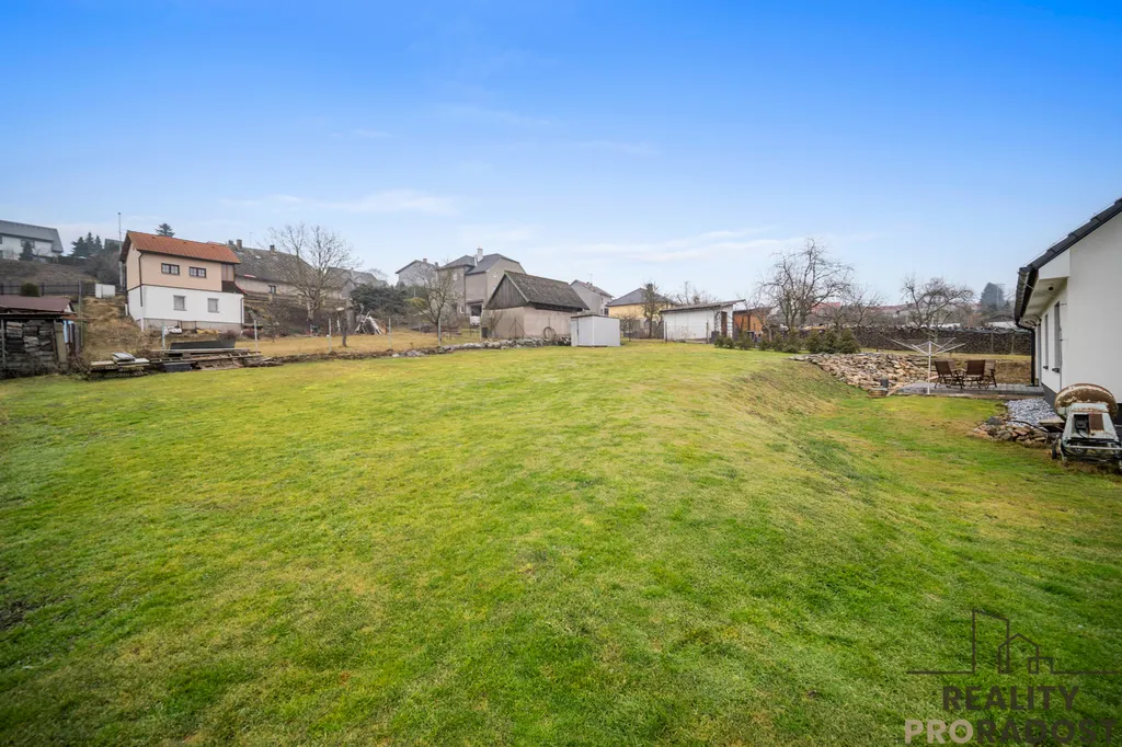 Pozemek o velikosti 1 595 m² nabízí dostatek prostoru před i za domem.