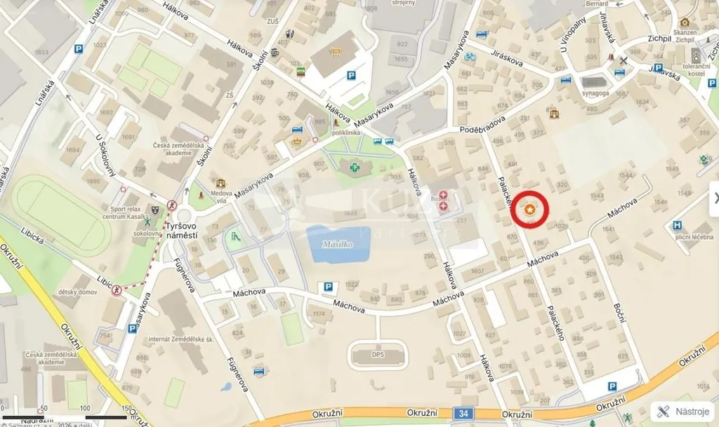 Pozemek o velikosti 524 m2 se nachází v ulici Palackého blízko centra Humpolce. Ulice je klidná s rodinnými domy, kde tento pozemek jediný není zastavěn. Malá stavba na pozemku byla využívána jako garáž a dílna, později jako jednodušší rekreační bydlení pro jednu nenáročnou osobu. Elektřina zavedena v garáži, voda na pozemku, možnost napojení na kanalizaci (VODAK Humpolec s.r.o.), plyn (GAS Distribution s.r.o.) a pevný internet (CETIN a.s.) v silnici přímo před pozemkem. Ve vzdálenosti 400 m je supermarket, základní škola i ZUŠ. Dětské hřiště, koupaliště a sportoviště 500 m. Autobus 250 m. Vlak 1 km. Vše včetně např. přímých odkazů nahlížení do katastru, mapy inženýrských sítí apod. na hu.damto.cz.