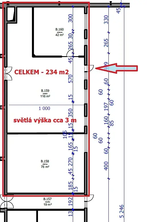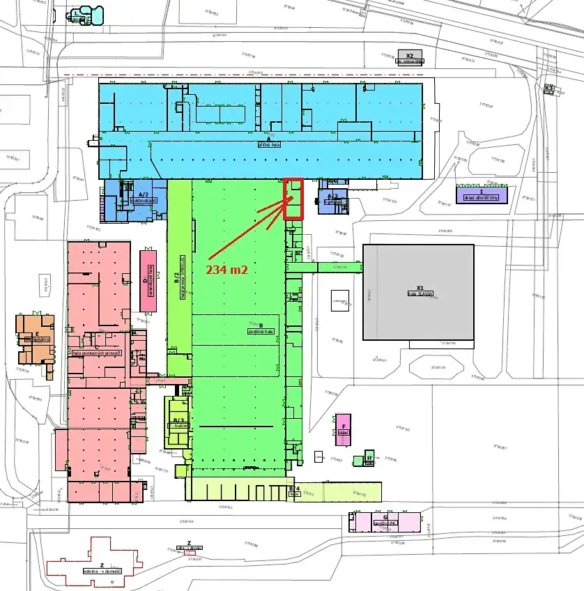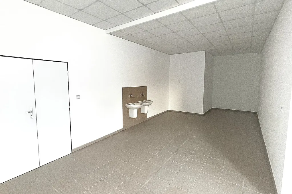 ◉ 235 m2 – nově připravené skladově výrobní prostory (původní zaměstnanecká jídelna), temperovaná, skládající se ze tří místností s možností dispozičních změn a úprav, samostatný vstup do prostor, samostatné prostory pod uzávěrem, zděné, světlá výška 3 m, dostatečný příkon el. energie, zavedena voda, možnost společného zázemí (WC, sprchy, šatny, atd.), možné jeho variabilní využití.