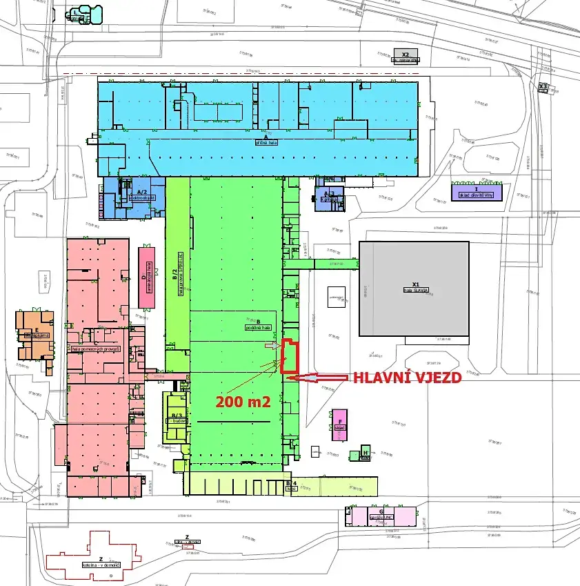 ◉ 200 m2 – jednolitá volná skladově výrobní plocha, temperovaná, s možností zřízení samostatného vstupu/vjezdu do prostor, samostatný, zděný, světlá výška 3,3 m, dostatečný příkon el. energie, možnost společného zázemí (WC, sprchy, šatny, atd.), možné jeho variabilní využití.
