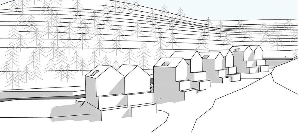Ve vypracované studii se na ploše o výměře 2995 m2 předpokládá možnost realizace 4 dvojdomů o 1. PP a 3. NP, v rámci kterých zde vznikne 24 bytových jednotek o celkové bytové ploše 2120 m2 včetně 135 m2 teras a 24 parkovacích stání. Domy mají terasovité uspořádání hmoty, aby bylo plně využito potenciálu svažitého pozemku a zároveň terasy vytváří příjemné spojení bytu s venkovním prostředím. Horní bytové jednotky jsou koncipovány jako mezonety, spodní naopak disponují menšími předzahrádkami. V rámci zbylých ploch je ÚP určeno 1576 m2 jako VP s možností průmyslového využití či zástavby. Výborná dostupnost hřebenů Krušných hor a zde situovaných běžkařských, sjezdových a turistických tras. Vzdálenost do: Karlovy Vary 13 km, Jáchymov 11 km, Ski areál Pleš 3 km, Ski areál Klínovec 18 km.