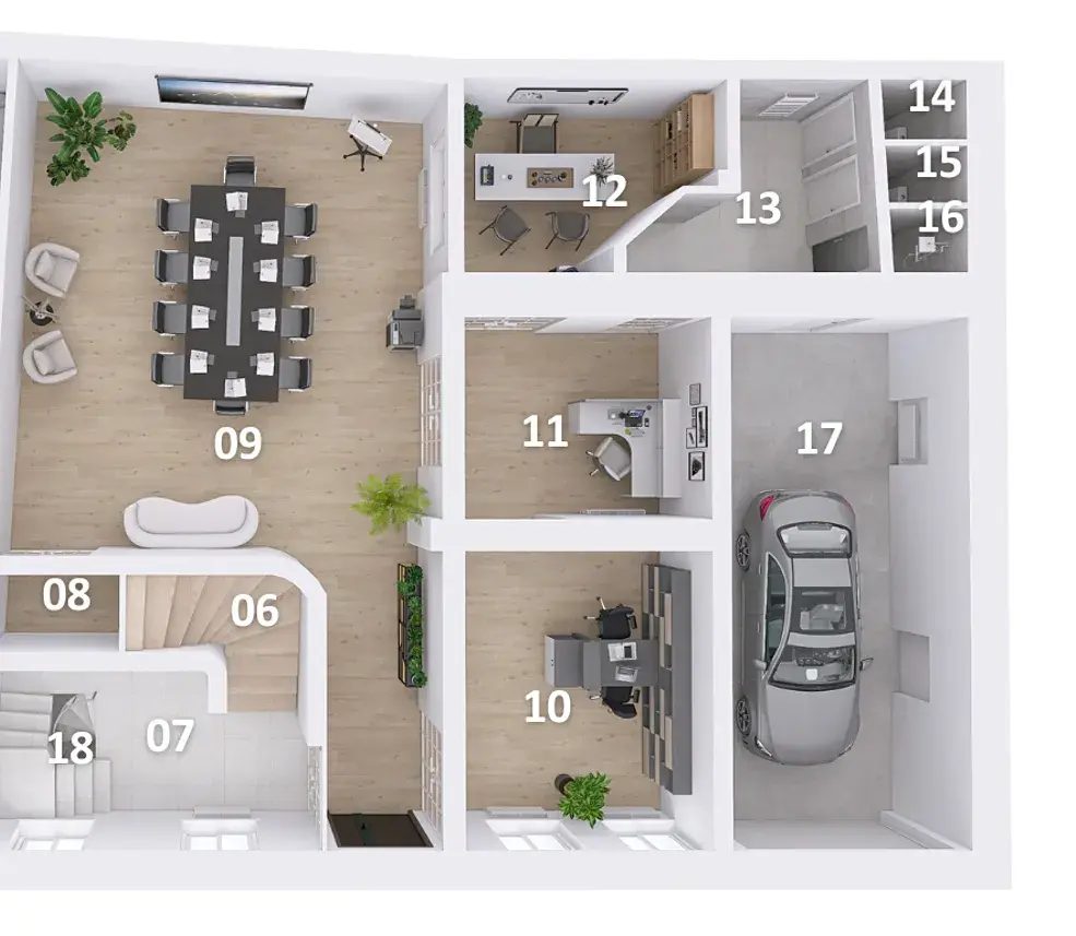 K dispozici je rovněž možnost pronájmu samostatné garáže o ploše 31 m², která přímo navazuje na kancelářské prostory a je z kancelářských prostor přímo přístupná. Cena pronájmu garáže: 5 000 Kč / měsíc.