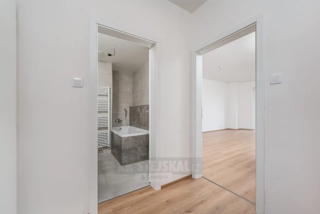Byt je navržen s mimořádným důrazem na eleganci, funkčnost a každodenní komfort. Po vstupu vás přivítá prostorná předsíň s dostatkem místa pro velkou šatní skříň i další úložné řešení. Koupelna je provedena ve velkoformátovém obkladu a nabízí kompletní vybavení – prostornou vanu se sprchou, toaletu a prakticky vymezený prostor pro pohodlné umístění pračky se sušičkou. Obytný prostor je příjemně prosvětlený, působí vzdušně a má promyšleně připravené zásuvky pro komfortní uspořádání lůžka. V obytném prostoru dále bude instalována kuchyně kompletně vybavena spotřebiči. Z pokoje se nachází také přístup na balkon pro příjemné venkovní posezení. K dispozici je společná kolárna a parkovací stání.
