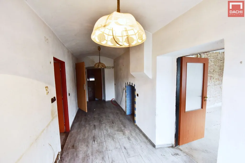 Nabízíme k prodeji rodinný dům, nacházející se v části obce Domašov u Šternberka, v okrese Olomouc. Tento cihlový dům s atypickým uspořádáním je jednopodlažní o dispozici 3+1, s jedním patrem. Objekt je v započaté rekonstrukci, což představuje skvělou příležitost pro dokončení dle Vašich vlastních představ, s možnosti využití i prostoru půdy. Dům má obdélníkový půdorys o rozměrech přibližně 13 m na délku a 7 m na šířku. Jedná se o přízemní dům s jedním patrem a otevřenou půdou.