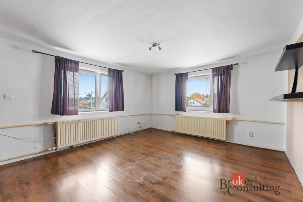 Dům je dvoupodlažní, částečně podsklepený a nabízí velmi praktickou dispozici. V přízemí se nachází vstupní zádveří, chodba, samostatný pokoj, prostorný obývací pokoj, kuchyně s jídelním koutem, koupelna, samostatné WC a komora. V patře jsou umístěny tři další pokoje, ložnice, koupelna s WC a chodba. Velkou přidanou hodnotou je půda o výměře cca 66 m², která je vhodná k vestavbě dalších obytných místností.