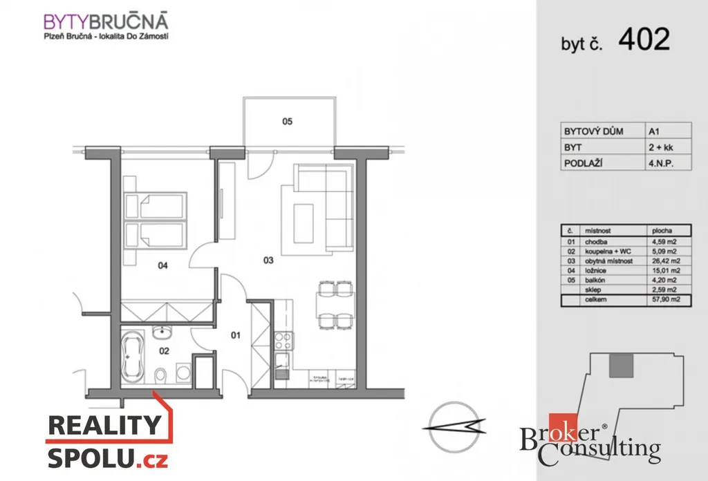 Lokalita Černice - Bručná nabízí místo pro klidné bydlení s vynikající dostupností jak centra města, tak přírody. Zastávka MHD je přímo před domem. Nájemné je 16.900,- Kč, měsíční poplatek za energie činí 3300,- Kč Vratná kauce je ve výši 20.200,- Kč. Provize RK je 1 nájemné + DPH! Byt je volný od 1.4.2026. Majitel si vyhrazuje právo na výběr nájemníka.