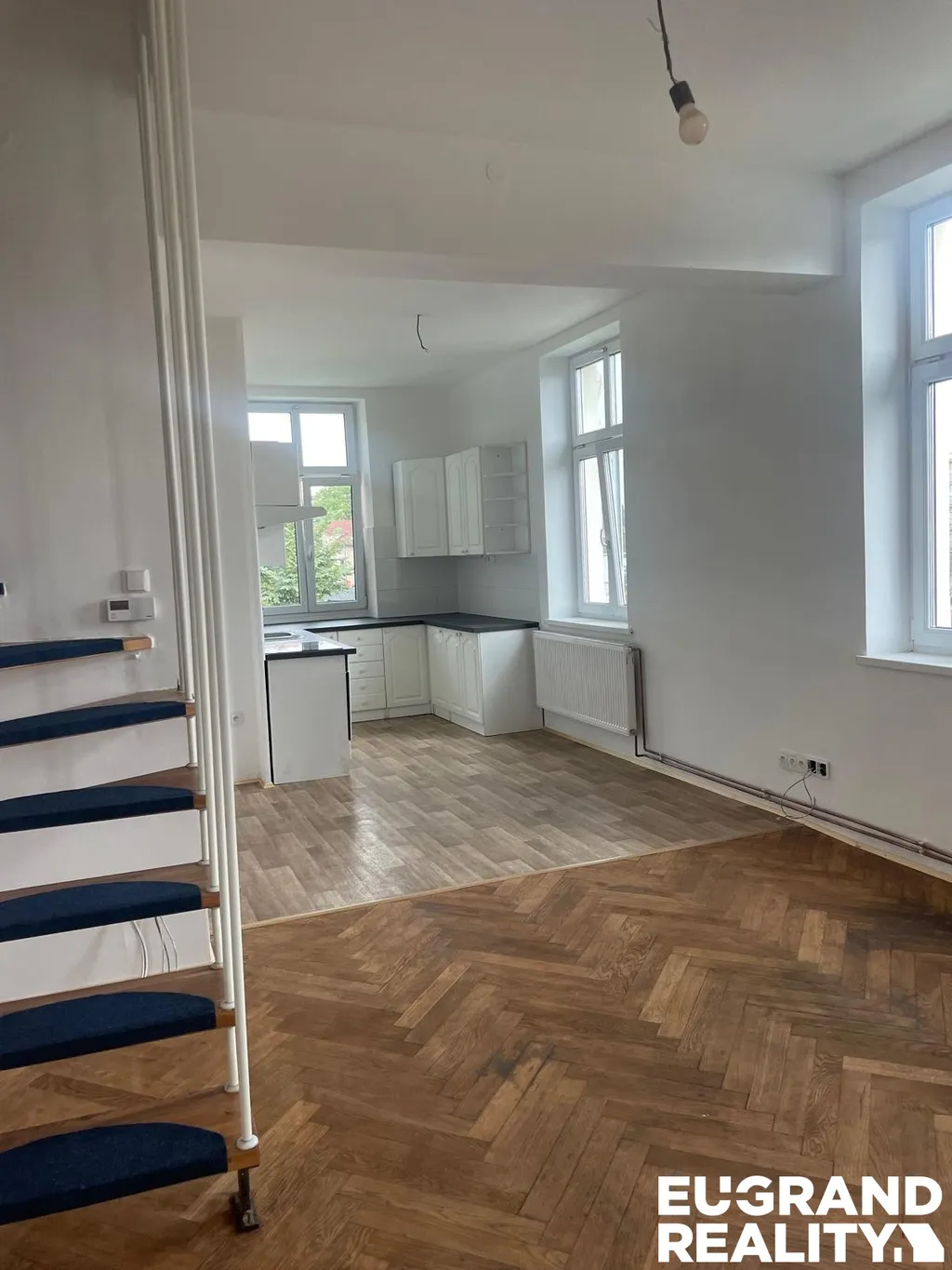 Kompletně zrekonstruovaná bytová jednotka se nachází v 2.NP a je přístupná po schodišti z centrální chodby. Byt má vlastní uzamykatelný vchod.