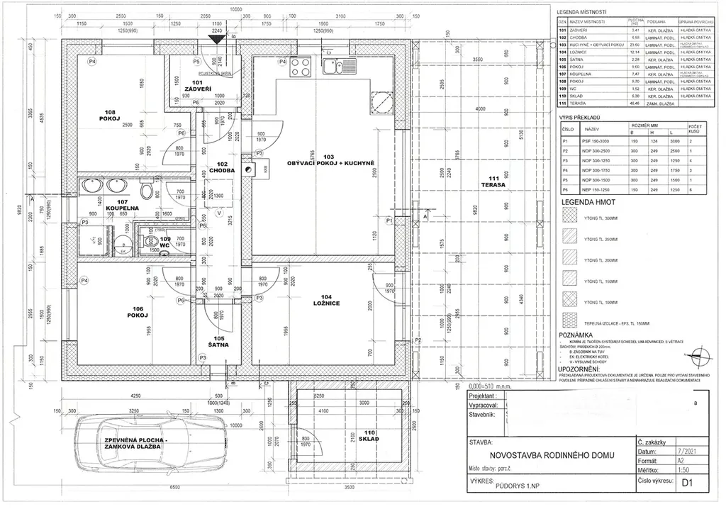 Prodej pozemku pro bydlení, s platným stavebním povolením a vypracovaným projektem přízemního rodinného domu se sedlovou střechou, o dispozici 4+kk s terasou a zpevněnou parkovací plochou pro 2 automobily. Stavbu je možné okamžitě zahájit.