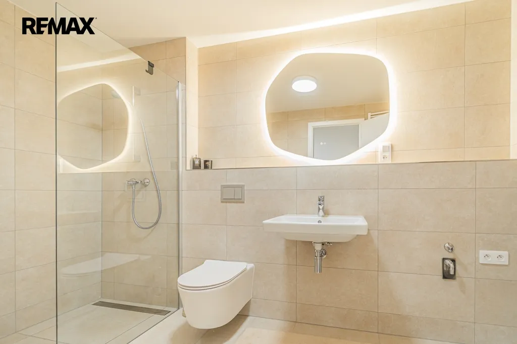 Hlavní ložnice o velikosti 19 m² je propojena s velkou šatnou a vlastní koupelnou, čímž vzniká komfortní a zcela privátní zóna pro majitele.