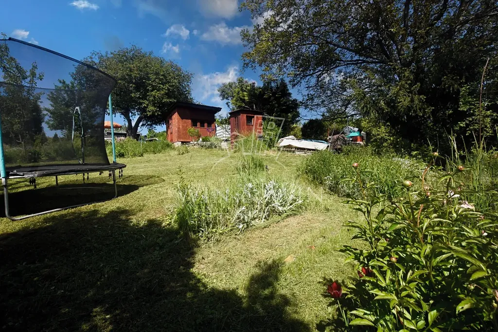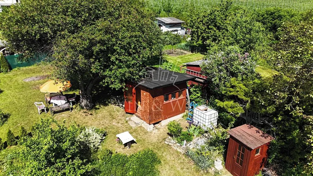 Na pozemku stojí zahradní drobná stavba po rekonstrukci (2023) se dvěma místnostmi a novou lehkou bitumenovou střechou s dlouhou životností. Slouží jako praktické zázemí pro víkendový pobyt nebo zahradničení.