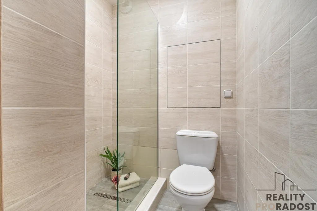 Byteček je skromný, ale pro jednotlivce nebo mladý pár který chce mýt svoje, dostačující. Nabízí 20,5m2, pěknou koupelnou, prostorným pokojem a lodžií.