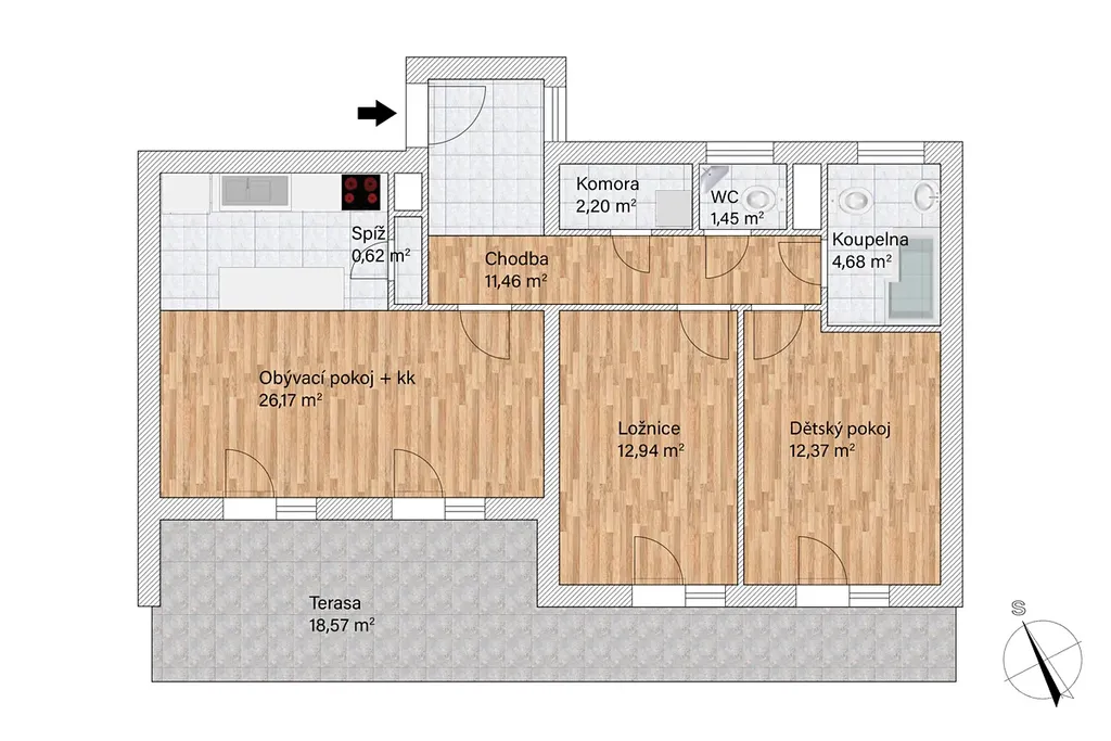 Prodej bytu 3+kk, Praha - Letňany, Hlučkova, 81 m2