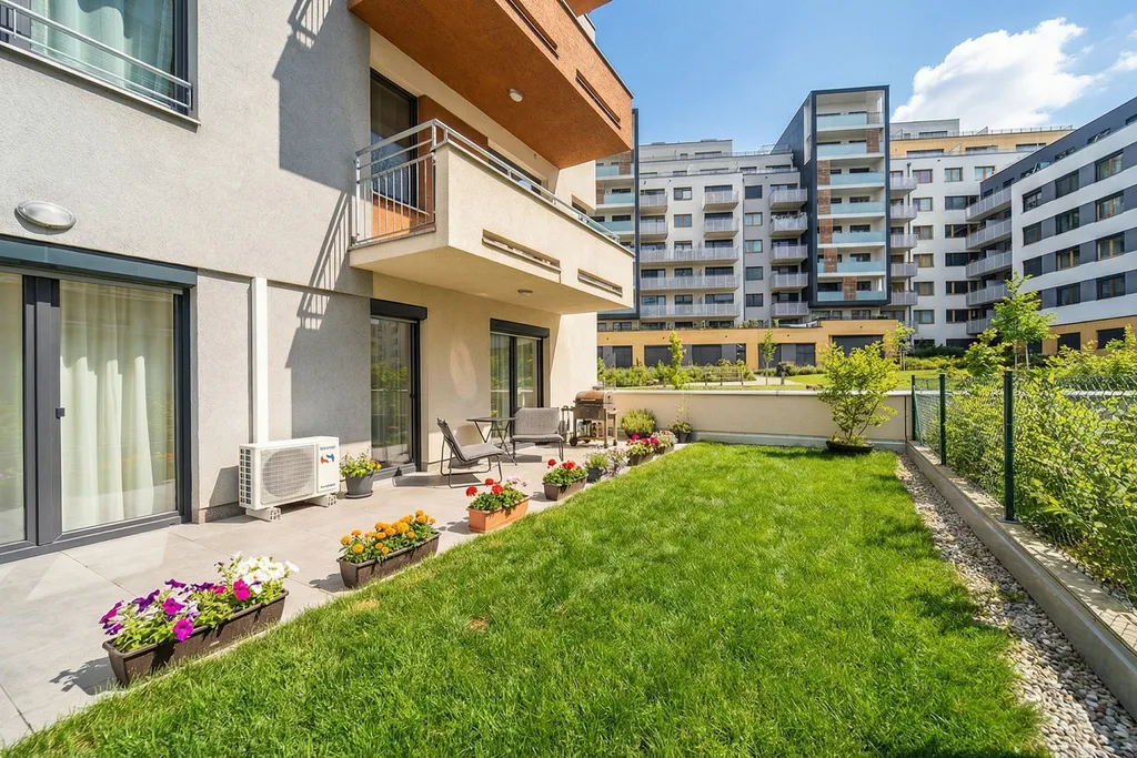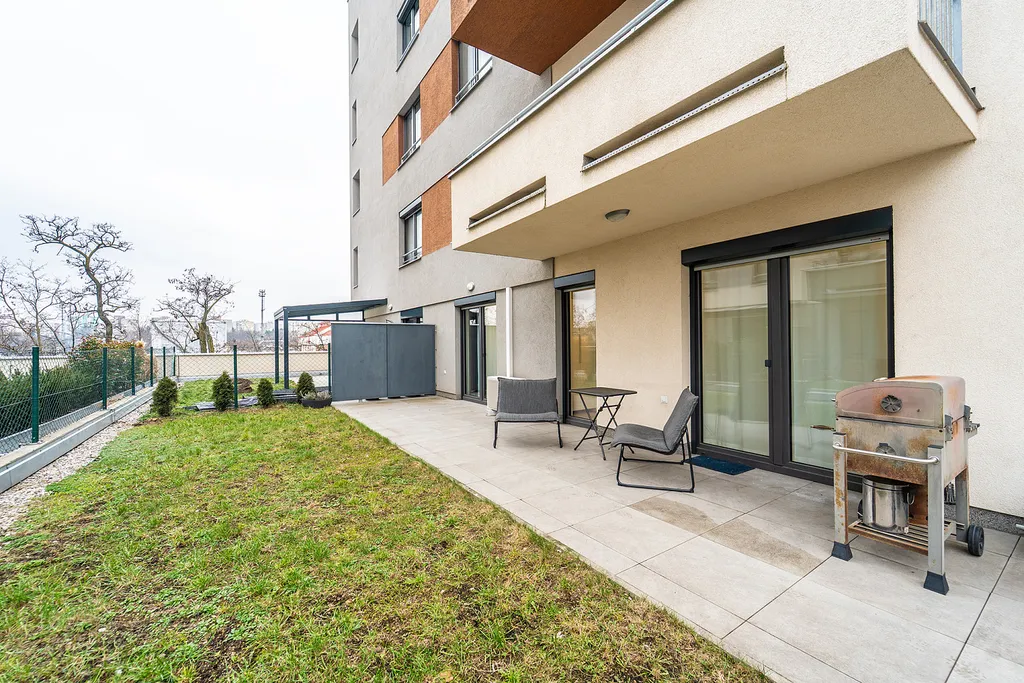 Výjimečnou předností bytu je soukromá zahrada s terasou, přístupná ze všech obytných místností. Nabízí ideální prostor pro ranní kávu, relaxaci i večerní posezení na čerstvém vzduchu. Součástí je zahradní nábytek, připravený k okamžitému užívání.