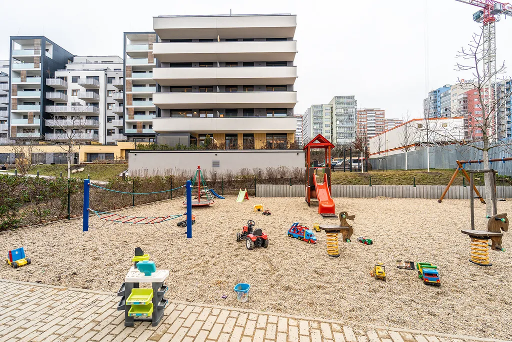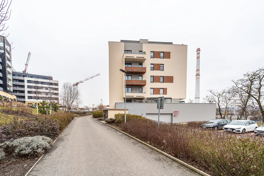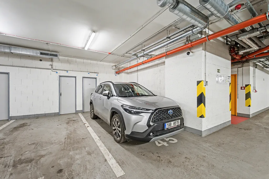 K bytu náleží parkovací stání v podzemní garáži. Uzavřený rezidenční areál zajišťuje vysokou míru soukromí, bezpečí a klidné bydlení. Lokalita nabízí výbornou dostupnost MHD, kompletní občanskou vybavenost, sportovní vyžití i dostatek zeleně.