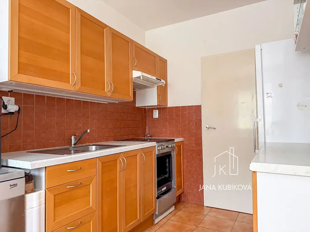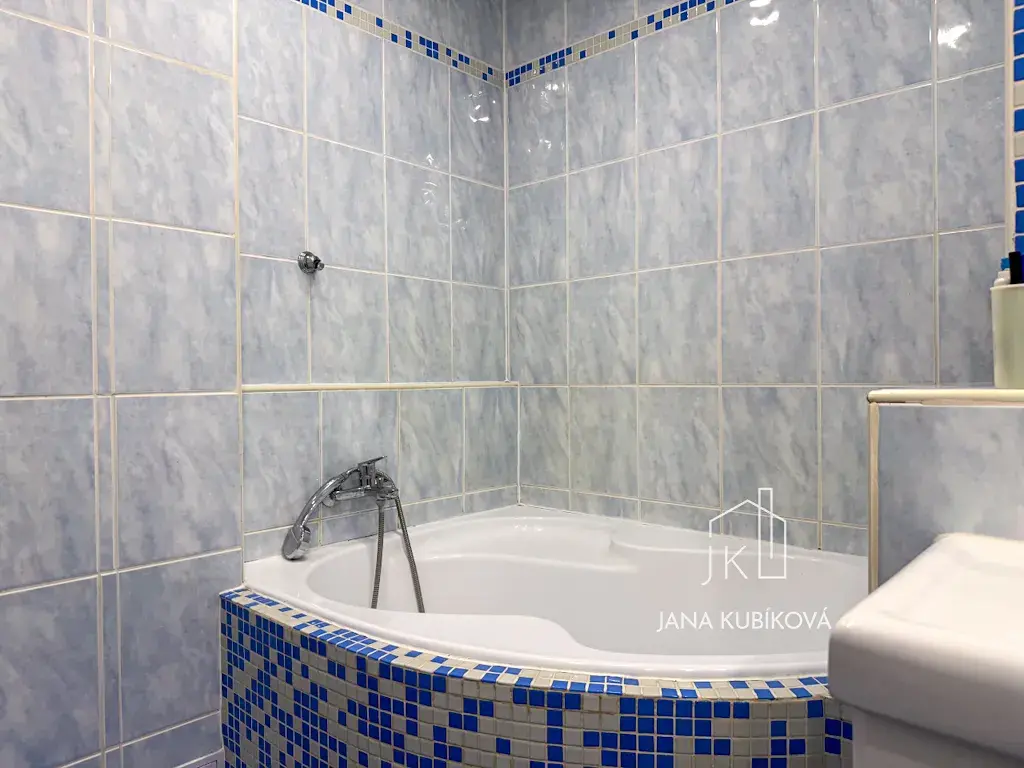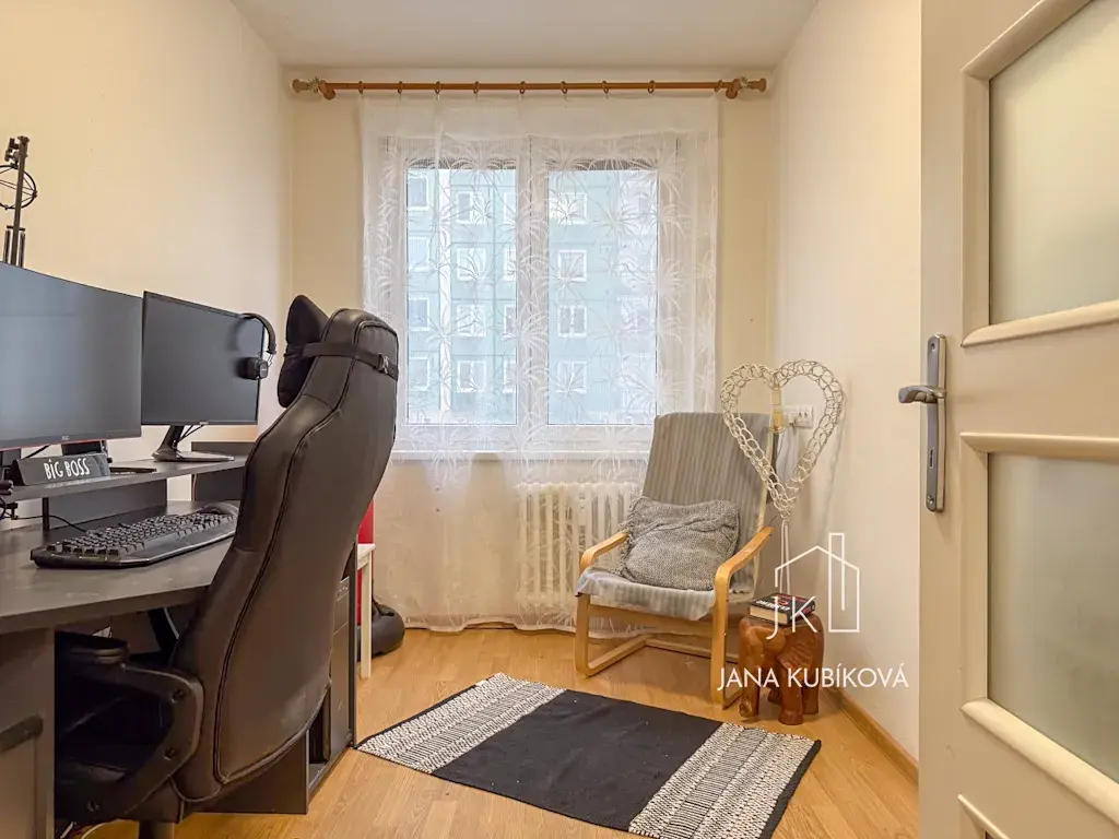 Byt disponuje praktickou dispozicí 4+1, kterou tvoří tři samostatné obytné pokoje, prostorný obývací pokoj, samostatná kuchyně s velkým benefitem – komorou na potraviny, dále koupelna s rohovou vanou, kde je dostatek místa pro pračku i sušičku, a samostatné WC. K bytu náleží také prosklená balkónová lodžie, která poskytuje příjemný prostor k posezení, a sklepní kóje v suterénu domu.