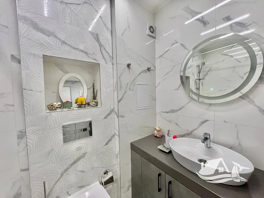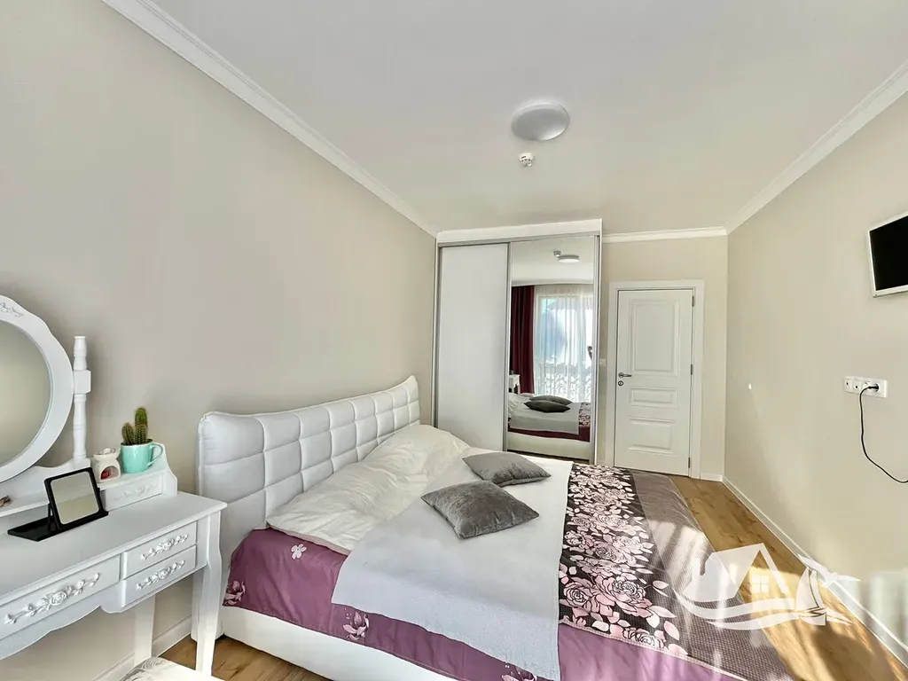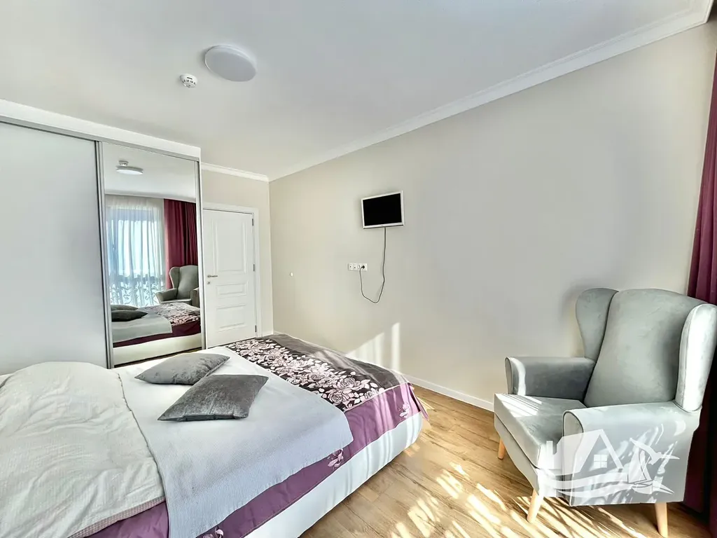 Nabízíme vám nový, plně vybavený třípokojový byt v centru Ravdy. Byt se nachází v novostavbě s velkým krásným pozemkem, ostrahou a bazénem. Byt se rozkládá na dvou podlažích a skládá se z: